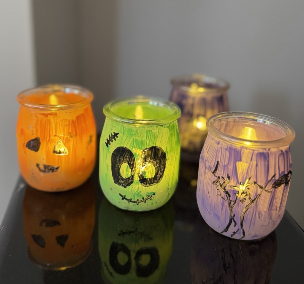 🕯️ 3. Les photophores d’Halloween avec des pots de yaourt en verre