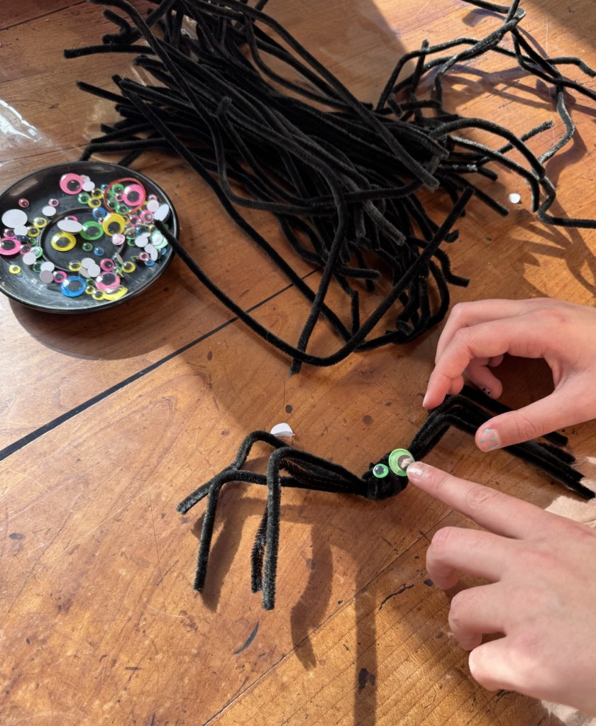 - Collez deux yeux mobiles… et voilà une araignée rigolote ou effrayante, selon l’envie !